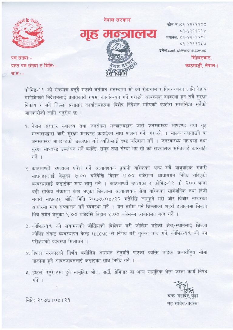 It may be noted that Kathmandu Valley has so far confirmed 62 fresh coronavirus cases, accoridng to the Ministry of Health and Population.