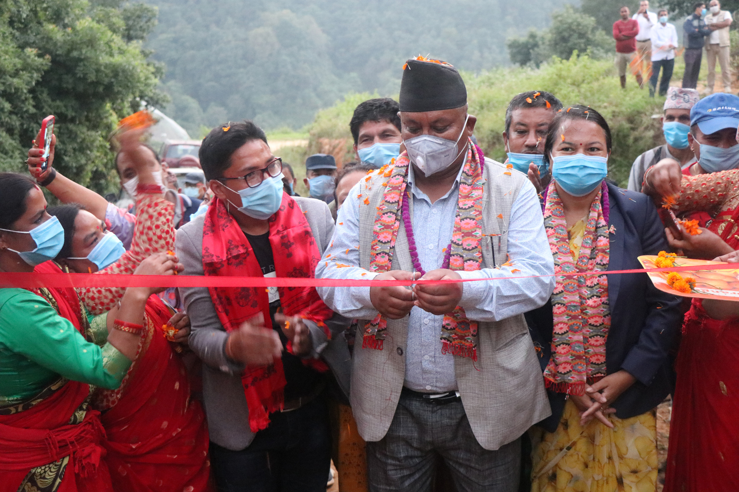 Mayor Basudev Thapa inaugurated the ‘Anantalinga Community Home Stay’ by cutting a ribbon tied across the gate leading to Anantalingeshwor.