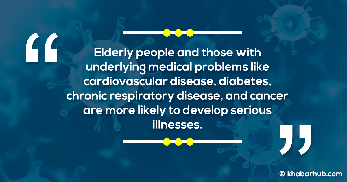 Elderly people and those with underlying medical problems like cardiovascular disease, diabetes, chronic respiratory disease, and cancer are more likely to develop serious illnesses.
