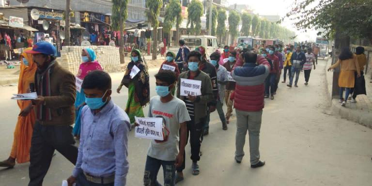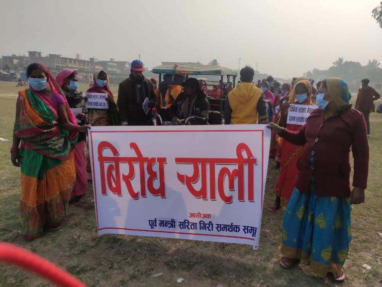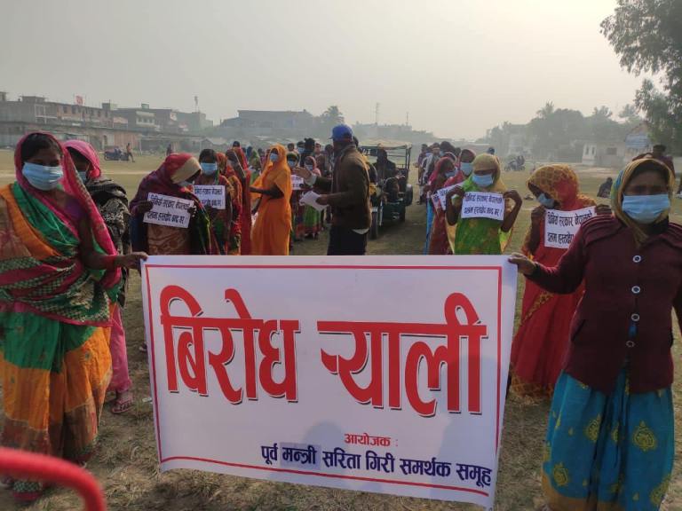 LAHAN: A group led by former lawmaker Sarita Giri has staged a demonstration in Lahan, Siraha today.