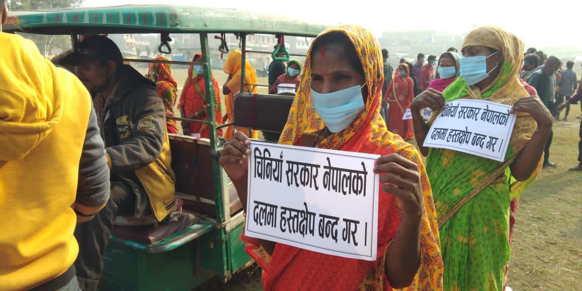 Participants said that they were forced to take part in the demonstration as leader Sarita Giri was “taken action” in the issue of Nepal’s revised map owing to increased Chinese interference in Nepal’s politics.