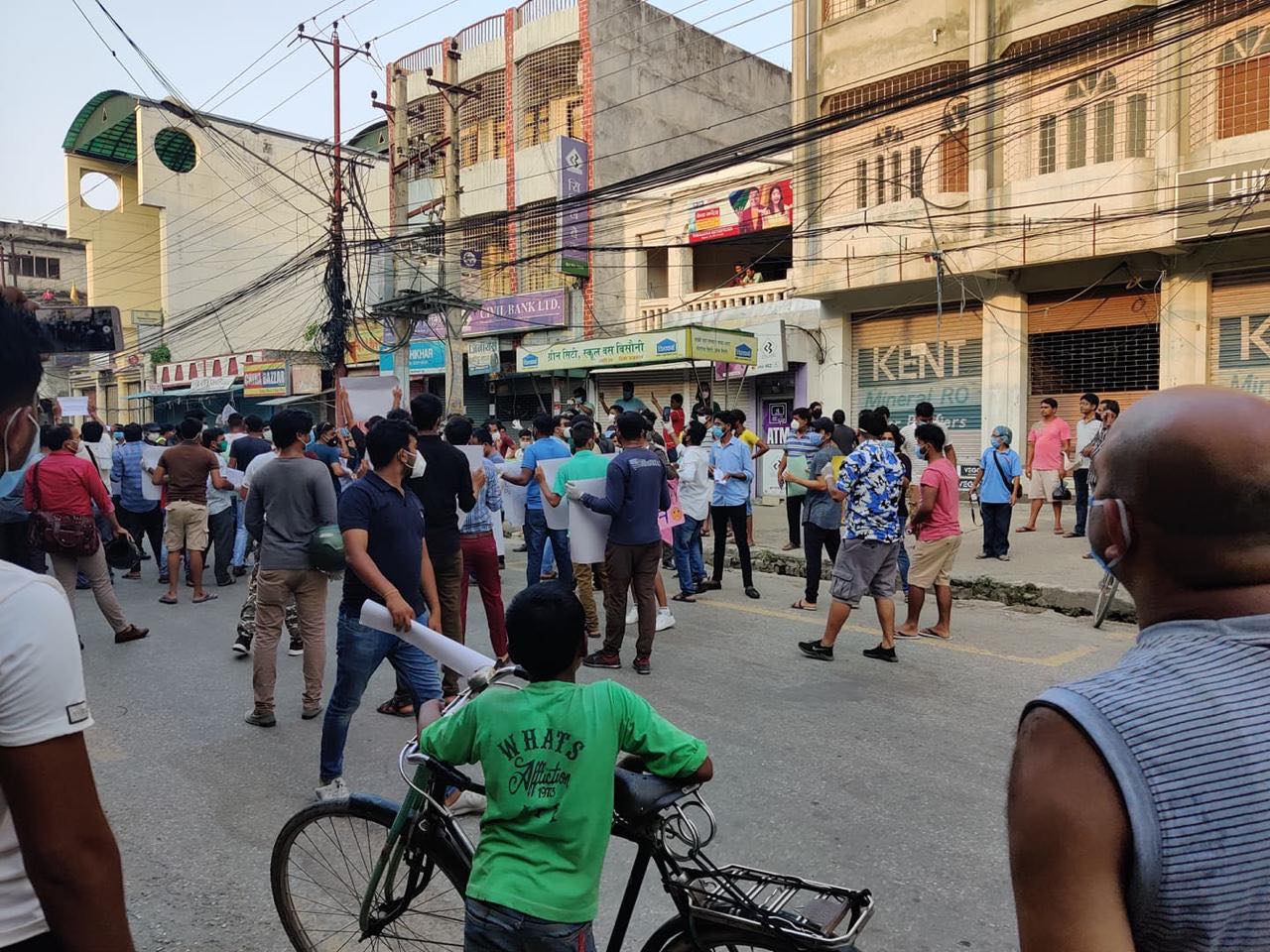 The youths of Birgunj have taken to the streets to put pressure on the government to take the right path saying that the RDT test being conducted by the government was not justified and the pace of the government was not satisfactory while lockdown is underway.