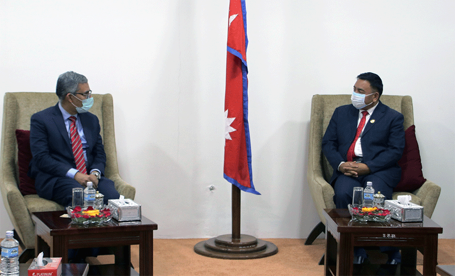 KATHMANDU: Newly appointed Bangladeshi ambassador to Nepal Salahuddin Noman Chowdhury paid a courtesy call on Vice President Nanda Bahadur Pun at the latter’s office Green House in the capital today.
