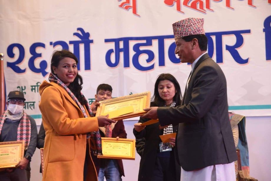 KATHMANDU: Kathmandu Metropolitan City has honored Khabarhub journalist Sabina Karki with the Good Governance Journalism Award.