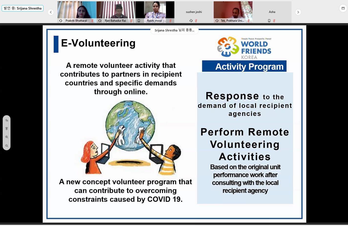 Representatives from Kathmandu University and Pokhara University shared their experiences and prospects related to e-volunteering.