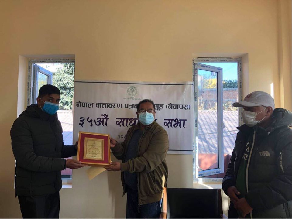 Meanwhile, NEFEJ has conferred the Environment Journalism Award this year to Yam Bom, who works for the Ayomail. The newly-elected president Bishwokarma presented the award.