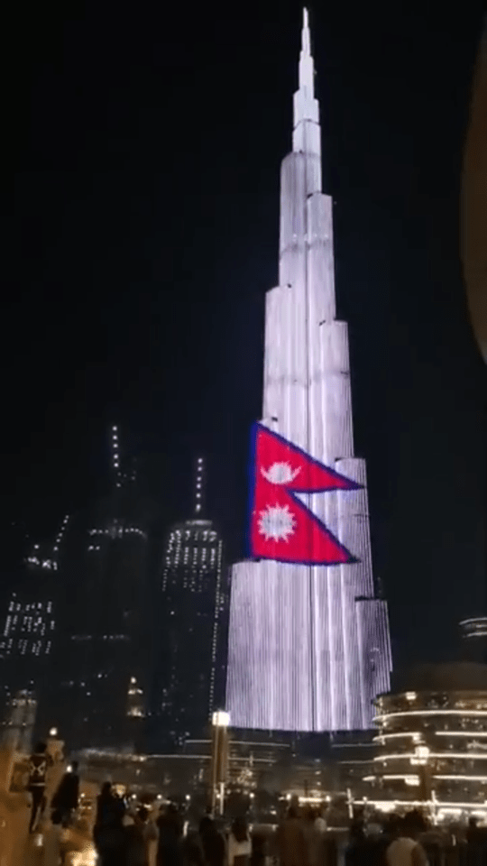 According to Nepali Embassy in the UAE, the tower lighted up with Nepal’s flag at 9:45 pm local time on the occasion of Constitution Day.