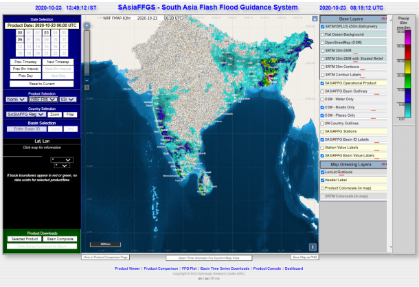 The South Asia FFGS, operated by the India Meteorological Department (IMD) is now providing the nation’s nearly 1.6 billion people with effective flash flood guidance and forecasts. IMD acts as the regional center covering Bhutan, Bangladesh, India, Nepal and Sri Lanka, providing forecast products, data and training.