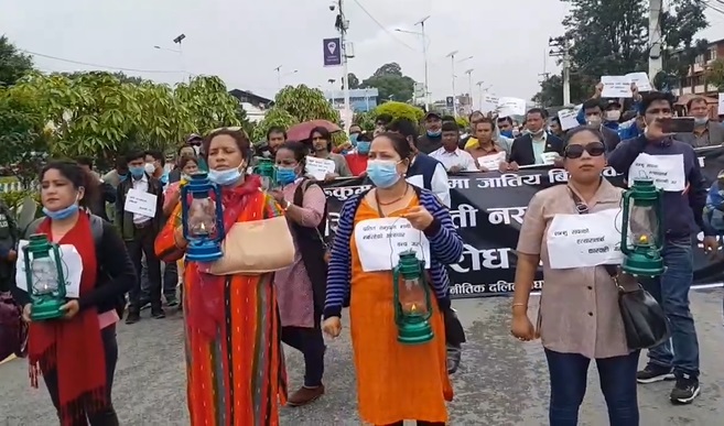 KATHMANDU: The Joint Political Dalit Struggle Committee on Thursday staged a lantern rally in the Capital to protest against the killing of six people in Rukum West.