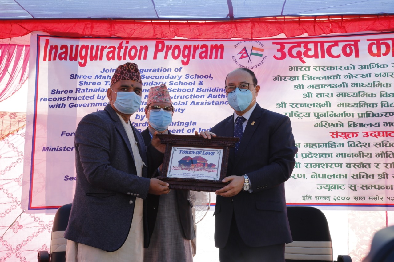 Indian Foreign Secretary Shringla inaugurated the three school buildings amidst a function organized at the Mahalaxmi Secondary School at Laxmi Bazaar.