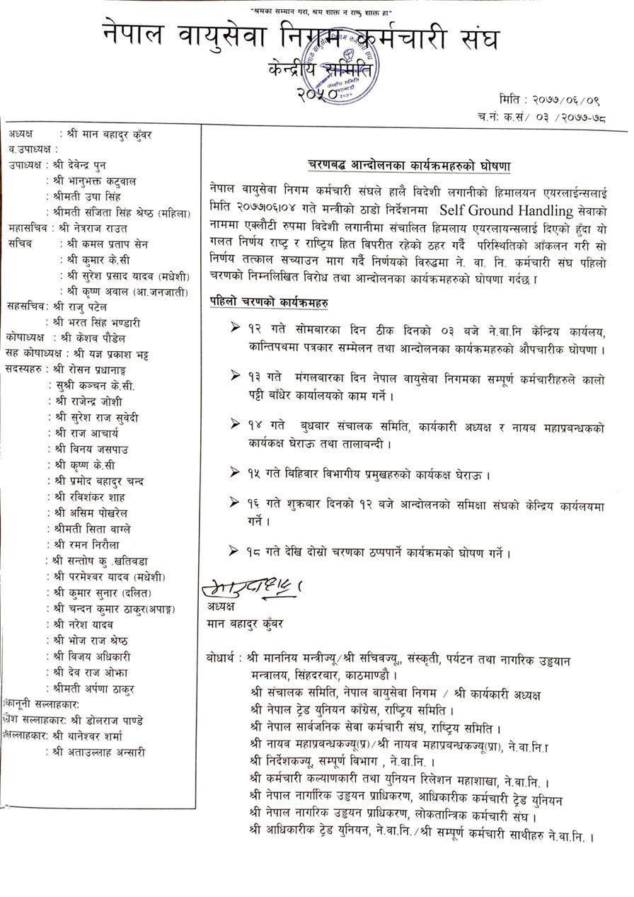 In a statement, Chairman of Nepal Airlines Corporation Employees Association Man Bahadur Kunwar demanded to correct the decision.