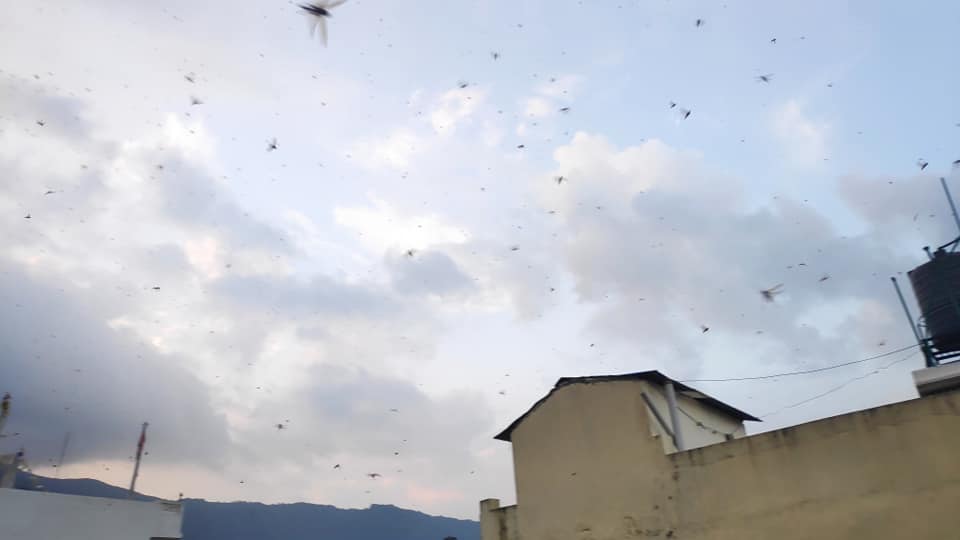 A large group of locusts was seen traveling towards the east via Kathmandu.
