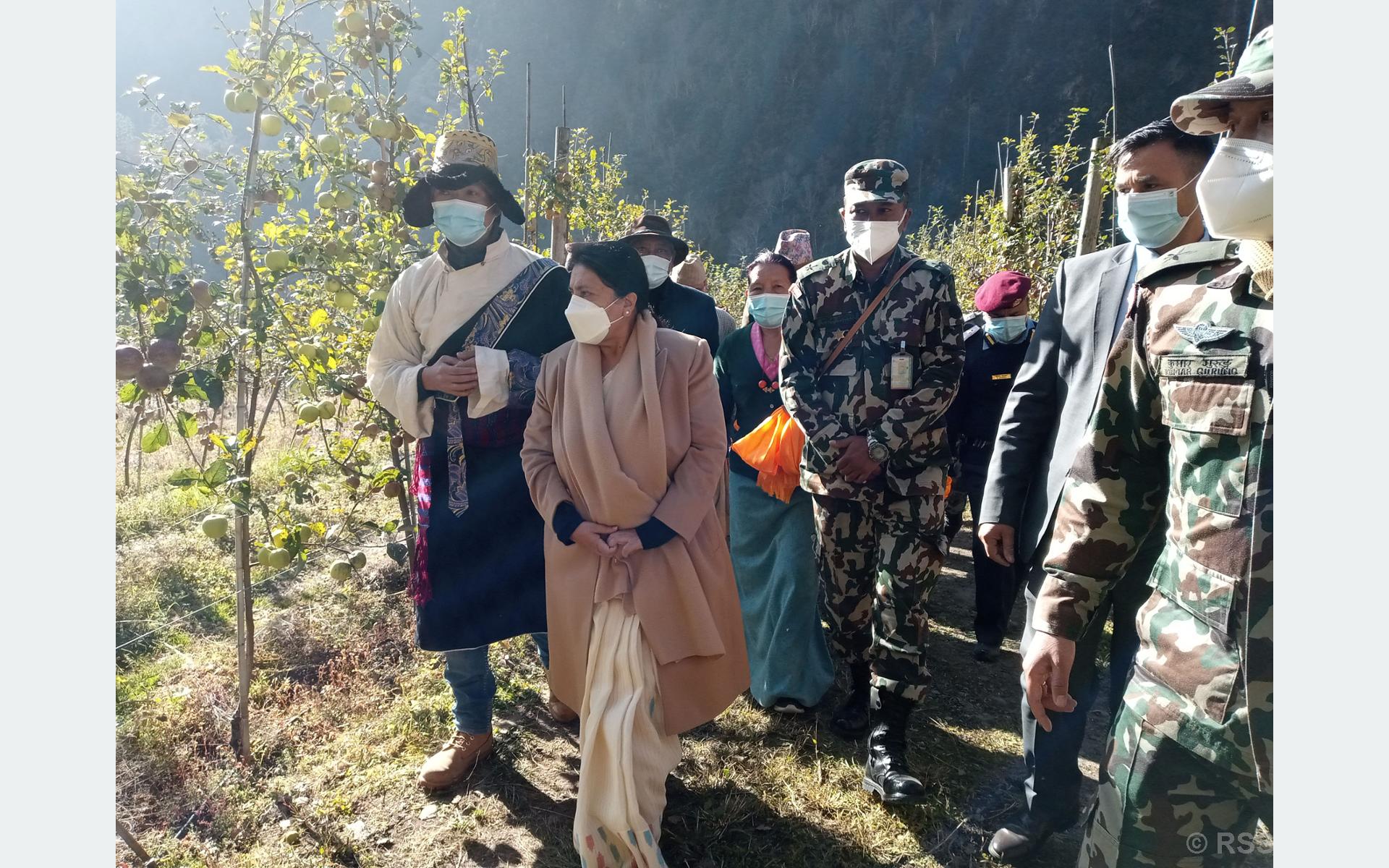 President Bhandari arrived in Manang today. She observed the Agro Manang Pvt Ltd Apple Farm belonging to lawmaker Palden Chhopang Gurung here.