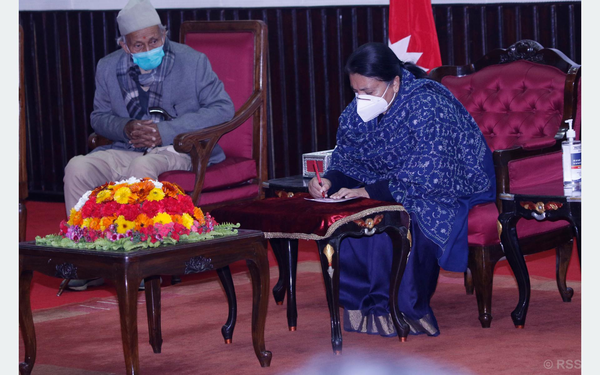 KATHMANDU: President Bidya Devi Bhandari affixed the first cancellation mark on a postage stamp bearing the image of centenarian person of letters, Satya Mohan Joshi, at a program organized at the Rashtrapati Bhawan, Sheetal Niwas, today.