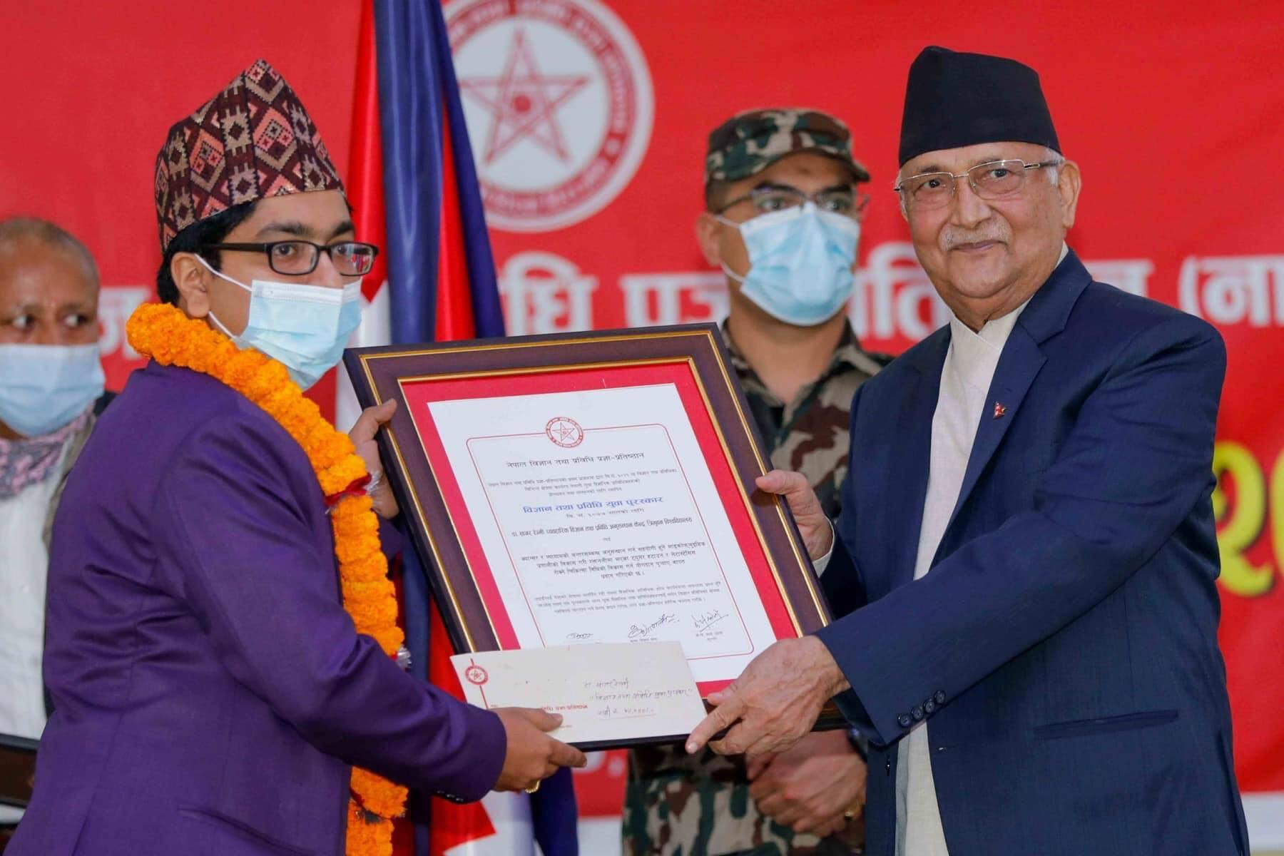 KATHMANDU:  Dr. Sagar Regmi has received Science and Technology Youth Award on Friday.