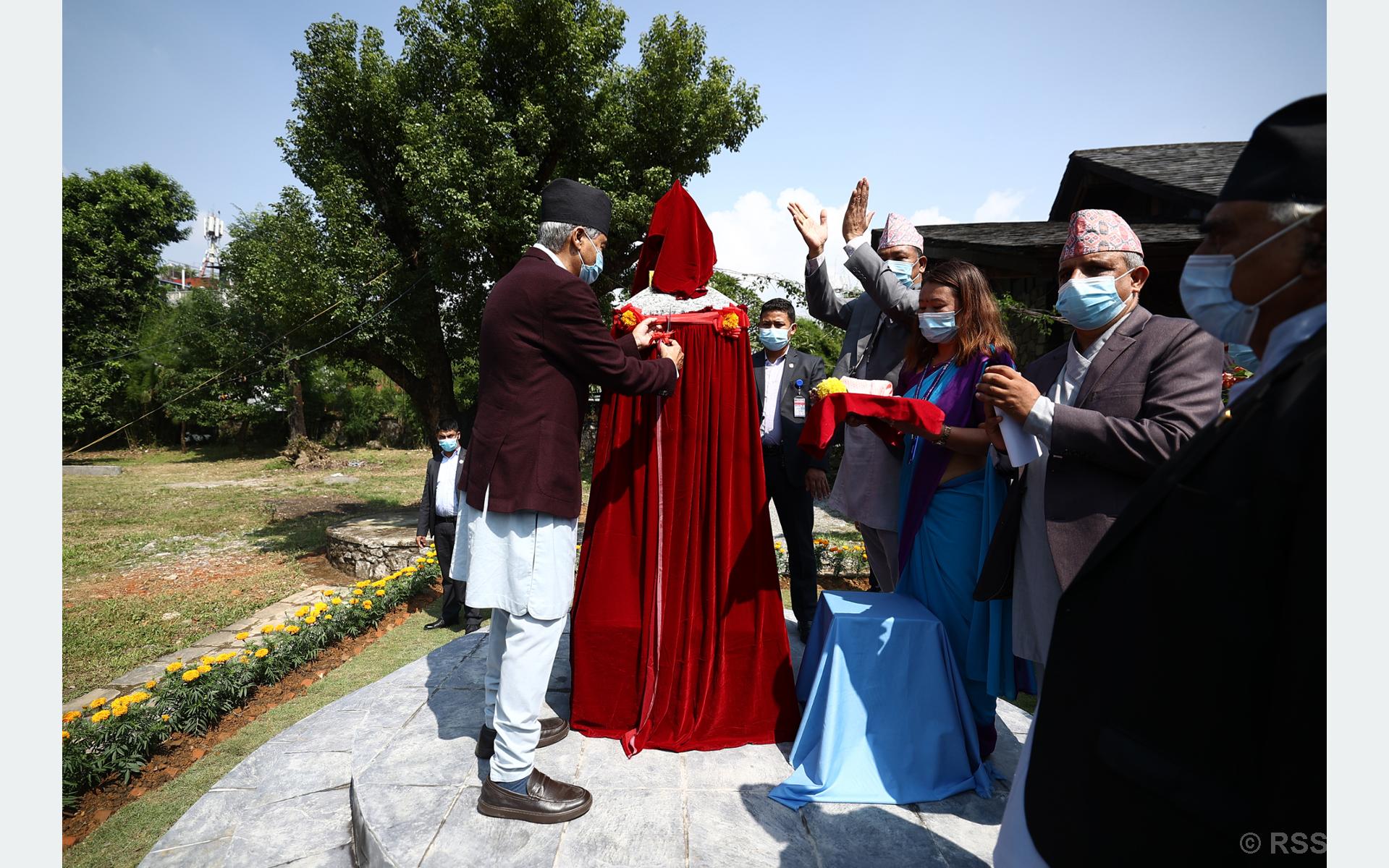 The monument is built by the Gandaki Province ministry for education, culture, science, technology, and social development in the premises of the New Bazaar-based Regional Museum at Pokhara metropolis.