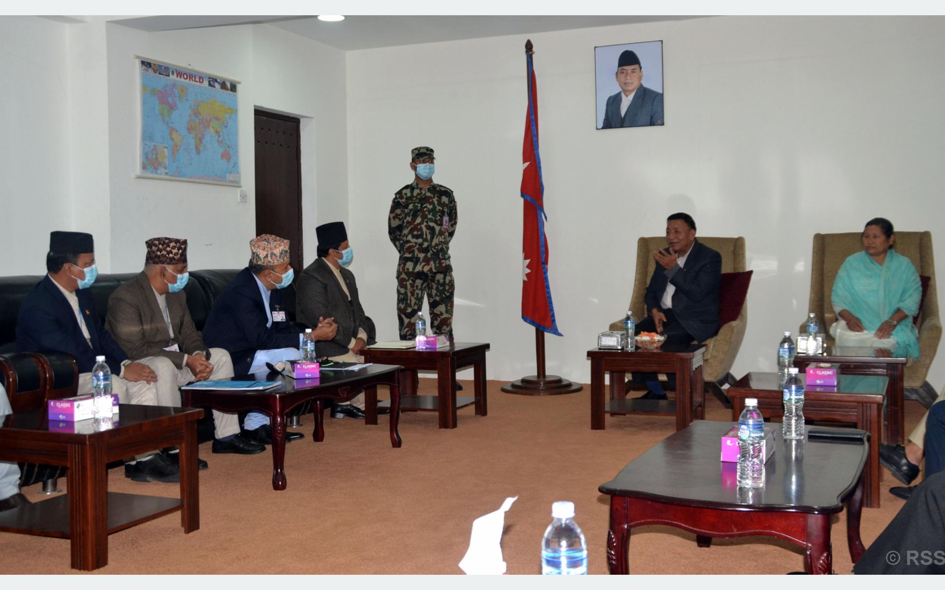 Commission member Dr Ram Kumar Phunyal, Secretary Kebal Prasad Bhandari, Director General of the Bureau, Nebin Lal Shrestha, and directors—Hemraj Regmi, Dilliraj Joshi, and Dhundiraj Lamichhane reached the official residence of the Vice President.