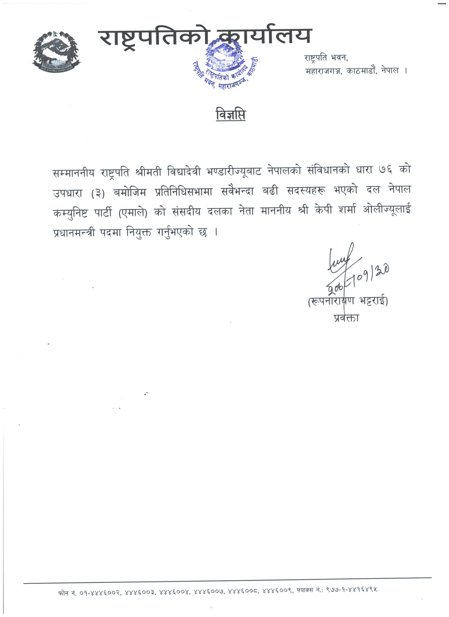 Meanwhile, PM Oli is being sworn in at 2:30 pm Friday at the President’s Office.