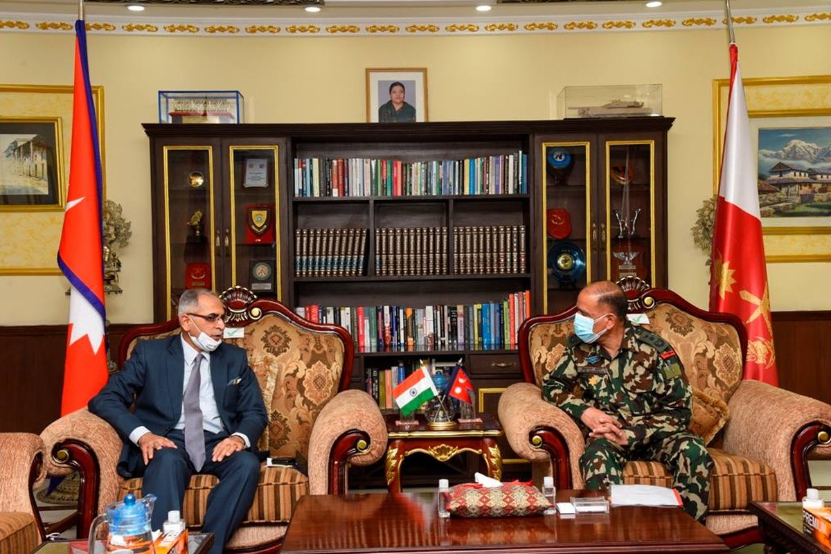 KATHMANDU: Indian Ambassador to Nepal Vinay Mohan Kwatra met with Acting Chief of Nepali Army Prabhuram Sharma at latter’s office Bhadrakali Friday.