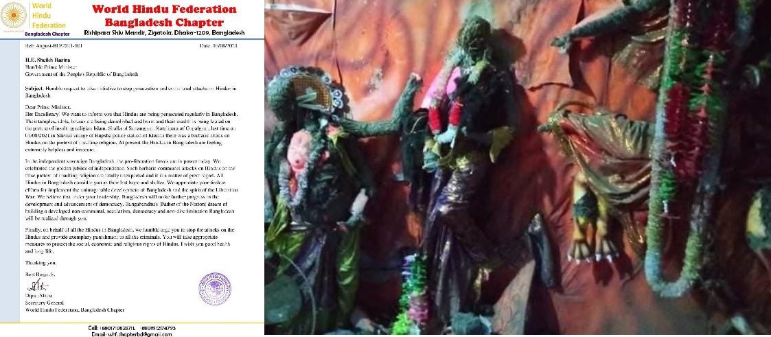 The World Hindu Federation’s Bangladesh Chapter, issuing a statement this week, has protested the barbaric attack against 56 houses, 10 temples of the Hindu minority community in Shiyali village of Rupsha police station of Khulna district of Bangladesh on the pretext of insulting Islam.