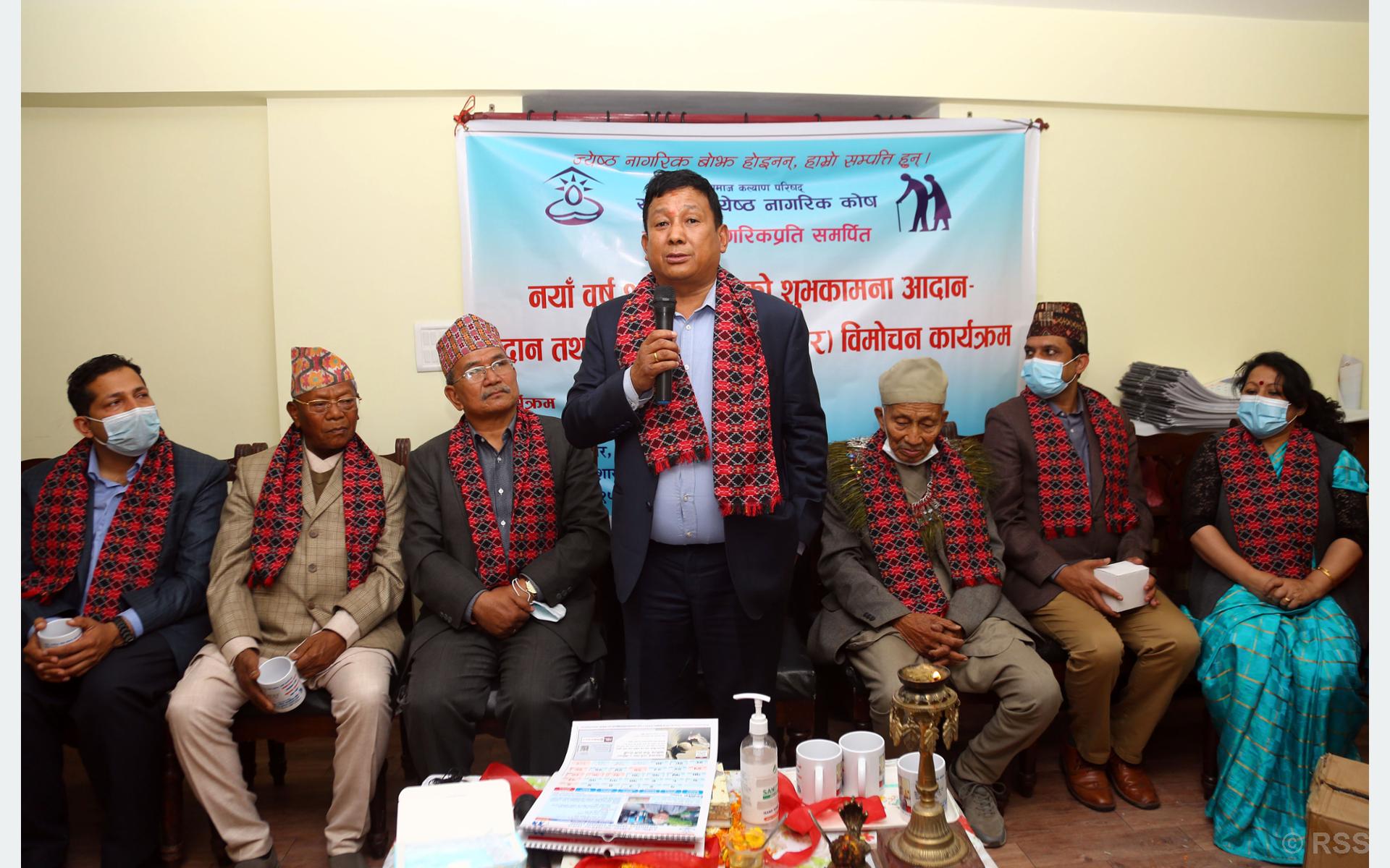 He pointed out the need for collective efforts to make the lives of senior citizens easier. On the occasion, Minister Gurung, mayor Maharjan, and centenary man Joshi jointly launched the calendar of the year 2078 BS.
