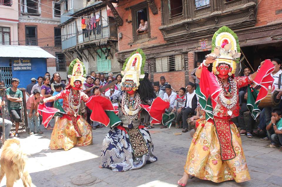 The dance is being performed in the evening as per the tradition of staging ‘Kattik Natya Mahotsav’ in Lalitpur Durbar area every year.