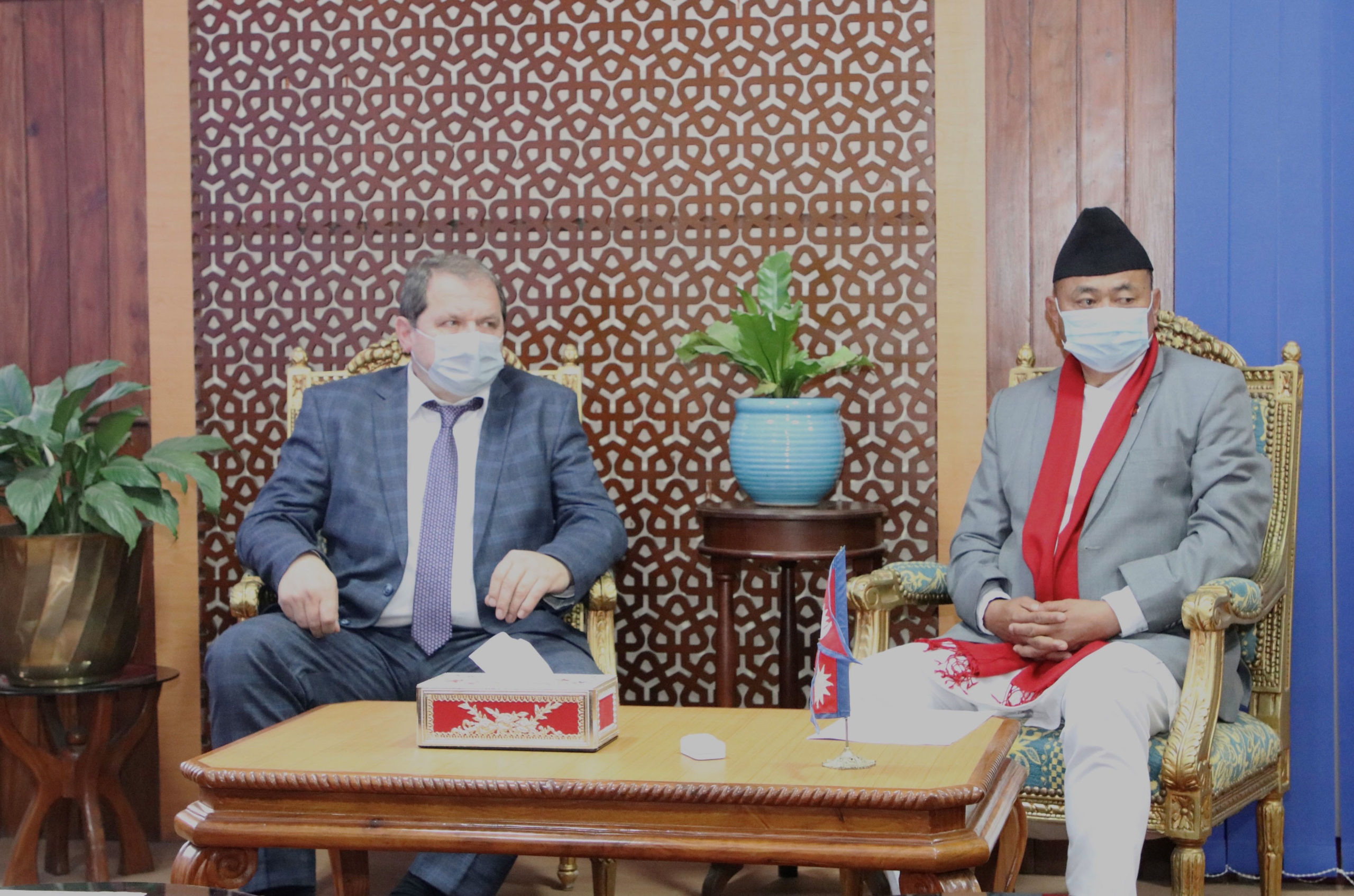Russian Ambassador to Nepal Aleksei Novikov while paying a courtesy call on Minister for Physical Infrastructures and Transport Basant Kumar Nembang at latter’s office in Singh Durbar shared interest in investing in the expansion of the rail service in the country.