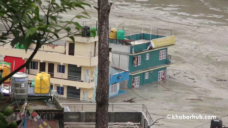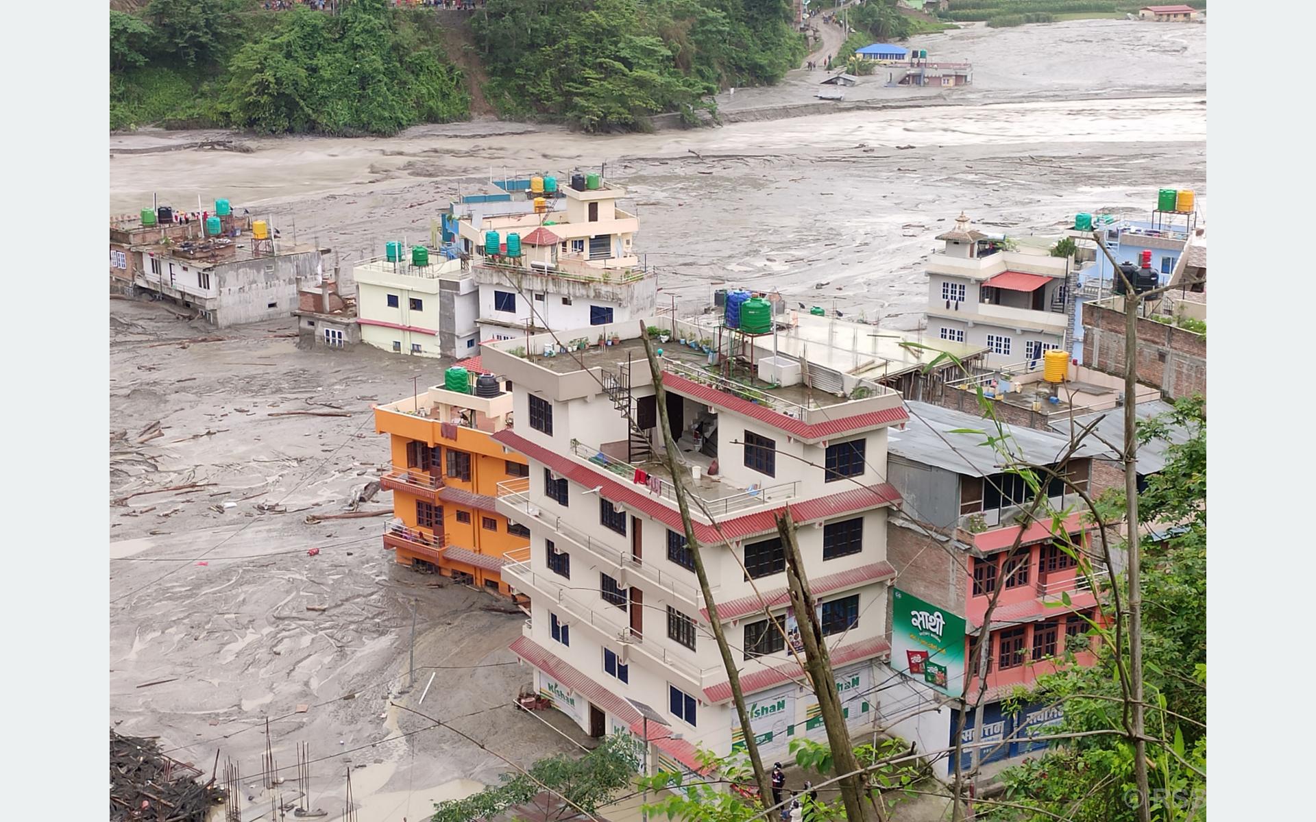 Several buildings in Melamchi Bazar, Sindhupalchowk district inundated. (Photo: RSS)