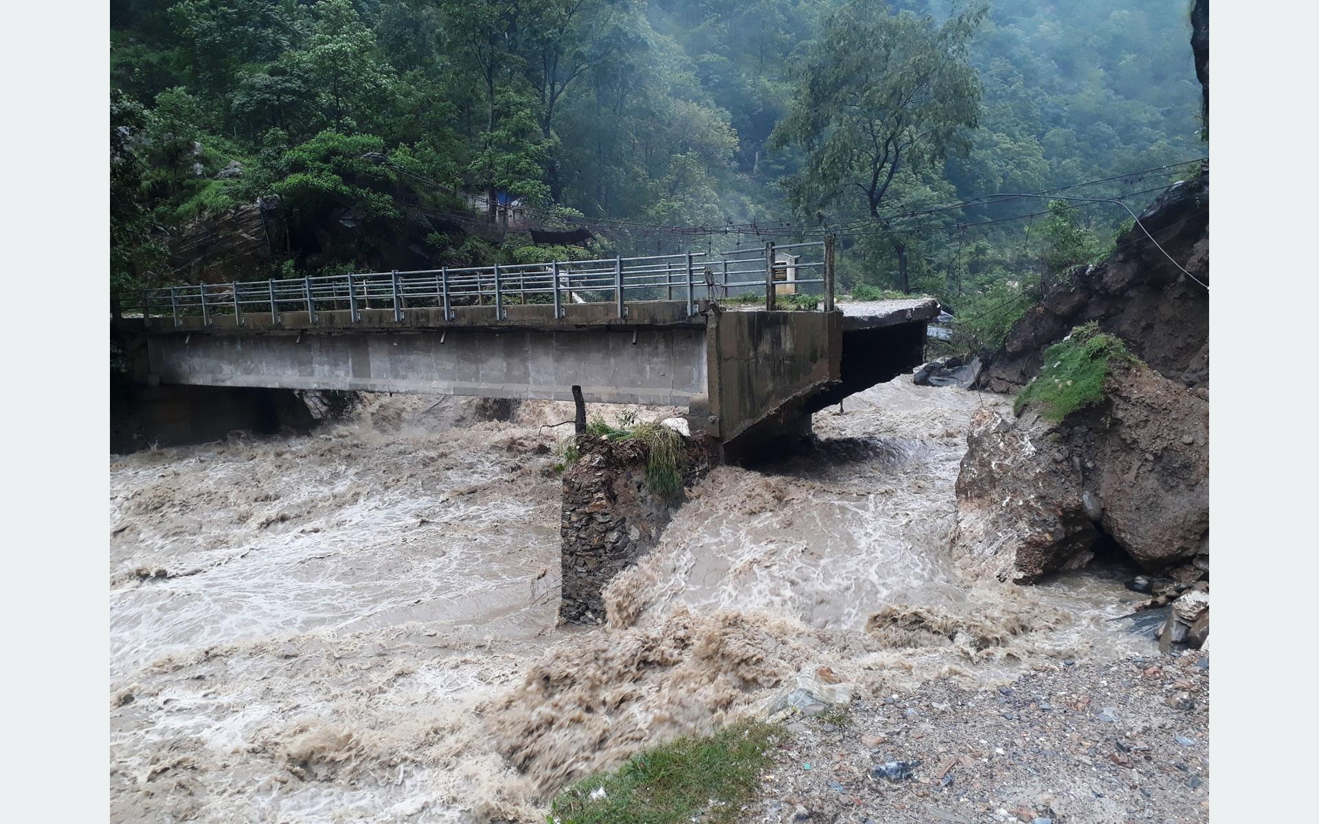 Floods in a river damage a bridge in Bagluing district. (Photo: RSS)