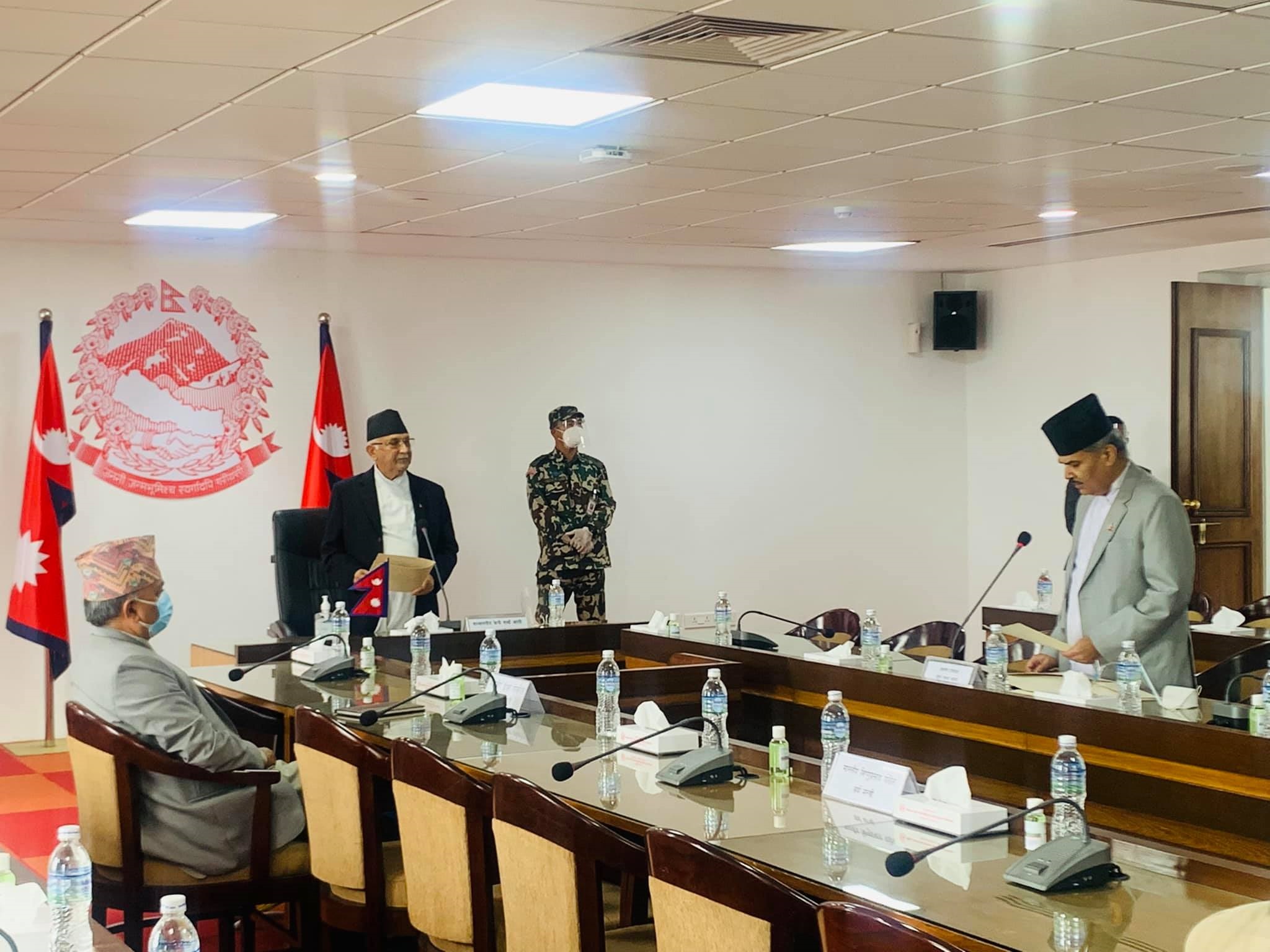 After being re-appointed, he took the oath before the Prime Minister and Chairman of the National Planning Commission KP Oli at Singha Durbar on Thursday.