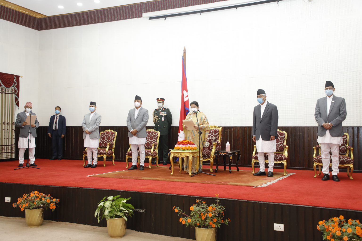 KATHMANDU: President Bidya Devi Bhandari has administered the oath of office and secrecy to newly-appointed Chief of Bagmati Province Yadav Chandra Sharma at the President’s Office, Shital Niwas, Friday.
