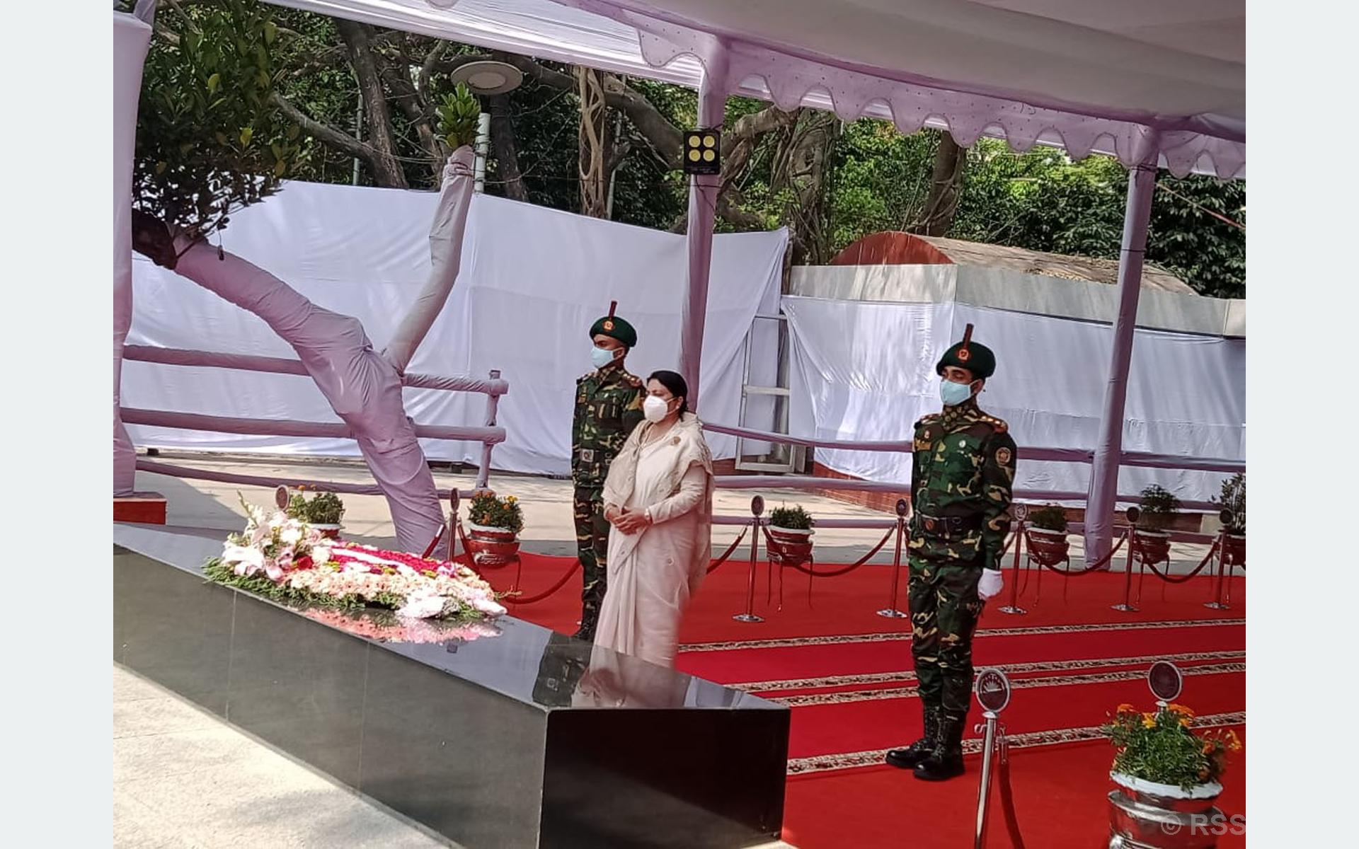 President Bhandari arrived here on Monday at the friendly invitation of Bangladeshi counterpart Mohammad Abdul Hamid. She had made a statement on the topic ‘Nepal-Bangladesh Relations and Bangabandhu’s Birth Centenary’, as the special guest at the program organized at the National Parade Square in Dhaka.