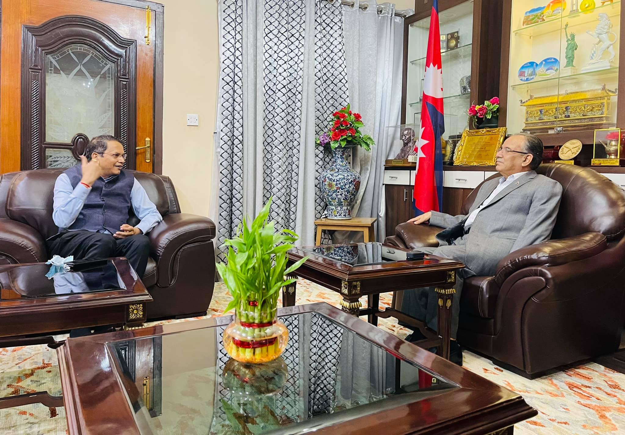 KATHMANDU: Bharatiya Janata Party (BJP) Foreign Affairs Department Chief Dr. Vijay Chauthaiwale has met Maoist Center Chairman Pushpa Kamal Dahal ‘Prachanda’ at the latter’s residence at Khumaltar, in Kathmandu, Monday.