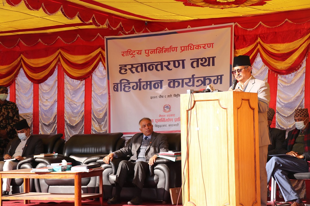 On the occasion, CEO Gyawali claimed that the NRA had succeeded in fulfilling the responsibility entrusted to it by the government during the challenging times with the help of the general public. According to NRA, 92 percent of private housing, 85 percent of archeological sites and 92 percent of government buildings have been completed so far. Educational buildings completion rate is 85 per cent, health institution is 80 and integrated settlement is 60 percent. The building of the security forces has been completed 100 percent.