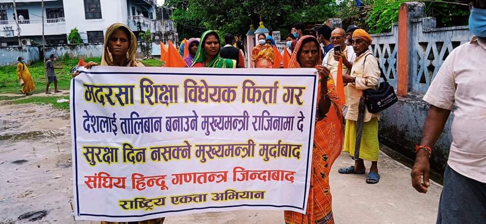 KATHMANDU: The ‘Rastriya Ekata Abhiyan’ (National Unity Campaign) has staged a protest against Province 2 Chief Minister Lal Babu Raut, calling to repeal the Madrasa Education Bill, in Saptari district of the province Tuesday.