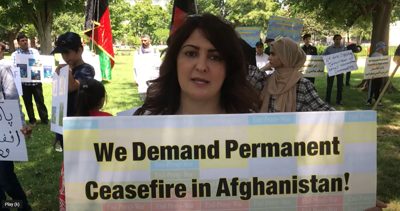 A protest was also organized by Afghan-American communities for the rights of all ethnic groups and for the guarantee of a just and lasting peace in Afghanistan that is acceptable to all. The protestors carried banners, one of which read: “We want a Democratic Afghanistan”.