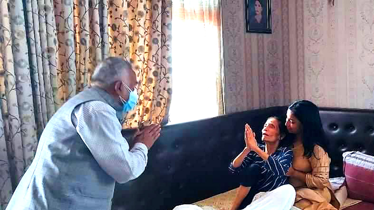 KATHMANDU: Nepali Congress (NC) senior leader Ram Chandra Poudel has paid a visit to Sita Dahal, the wife of CPN (Maoist Center) Chairman Pushpa Kamal Dahal at the latter’s residence in Khumaltar on Monday morning.