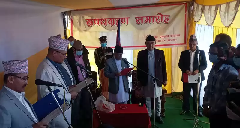 Tiwari is appointed as the Minister for Industry, Tourism, Forest and Environment and Samsohang as Minister for Social Development. Both of them were sworn in by Province Chief Somnath Adhikari (Pyashi) Friday afternoon.
