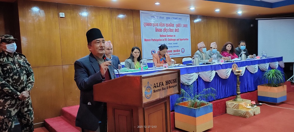 Inaugurating the “National Seminar on Women’s Participation in RTI: Challenges and Opportunities” organized by the National Information Commission (NIC) in Kathmandu Monday, the Minister urged one and all to contribute from their respective quarters for the effective enforcement of the RTI Act.