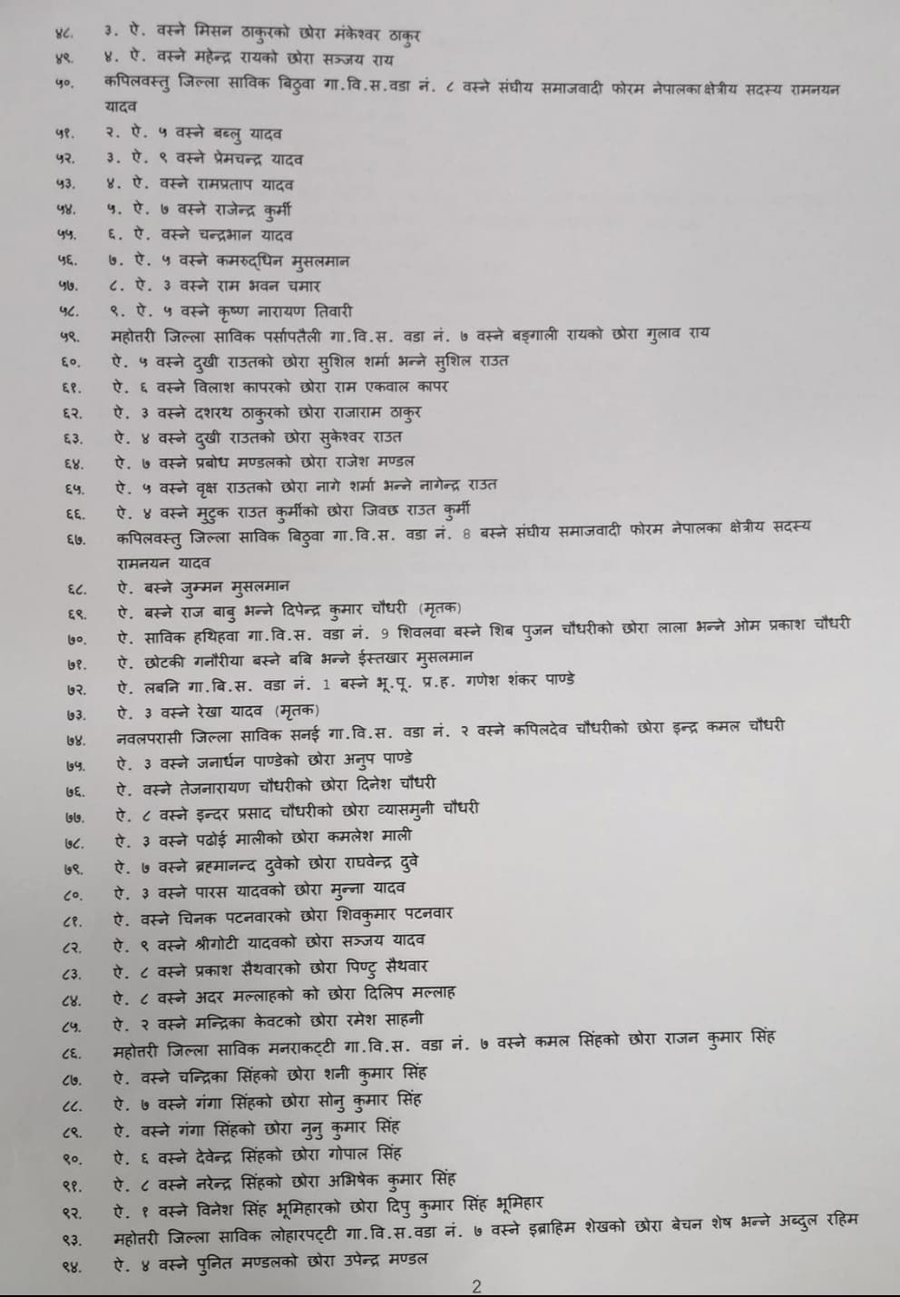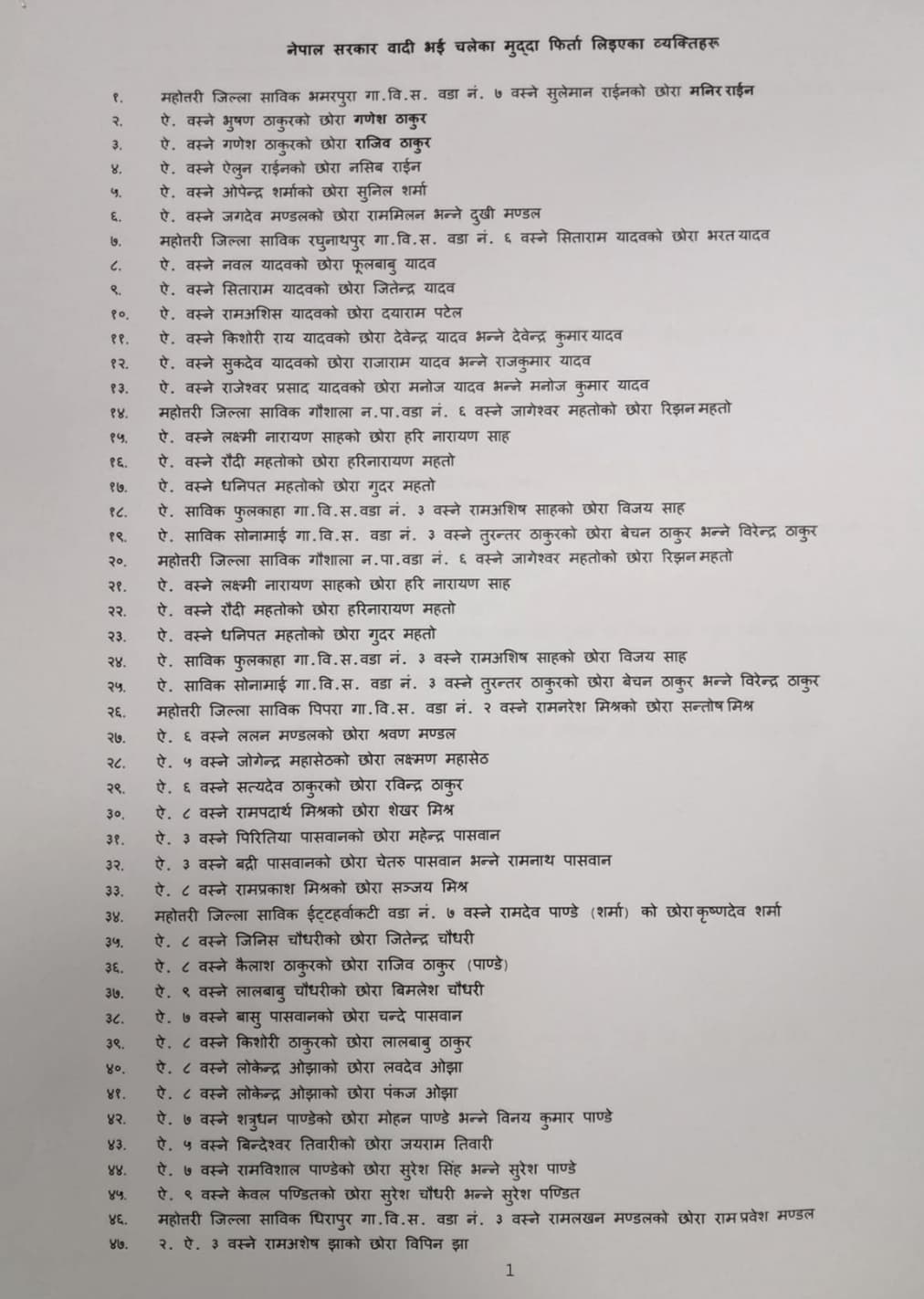 KATHMANDU: The Government of Nepal has withdrawn a total of 15 criminal cases against 120 individuals as per the demand of Janata Samajbadi Party (JSP).