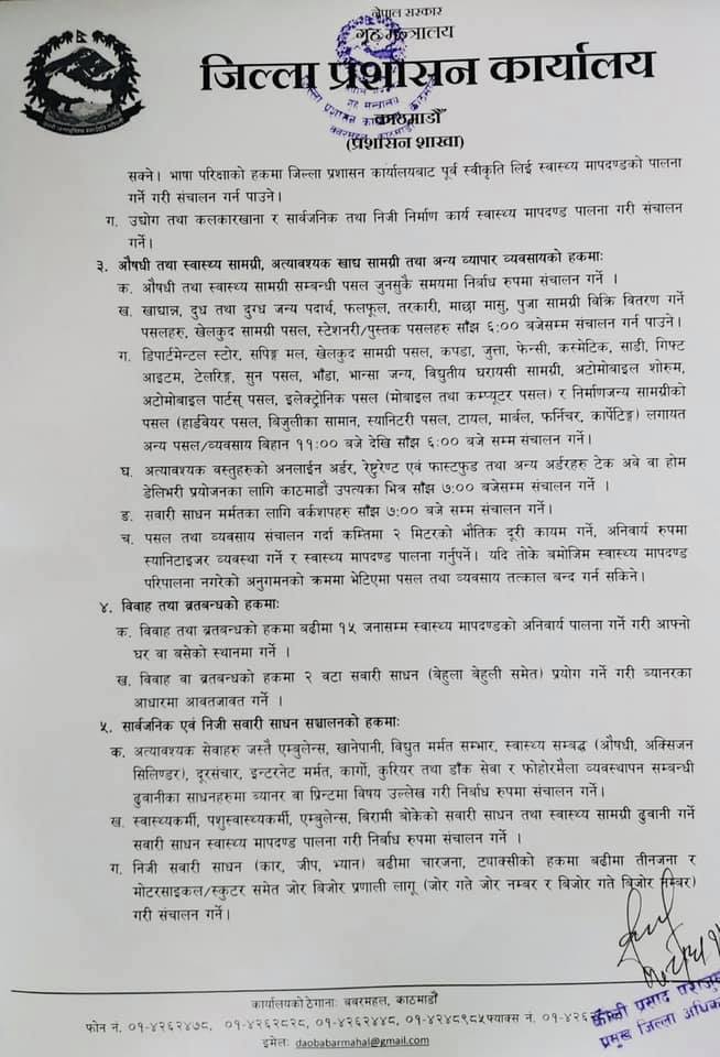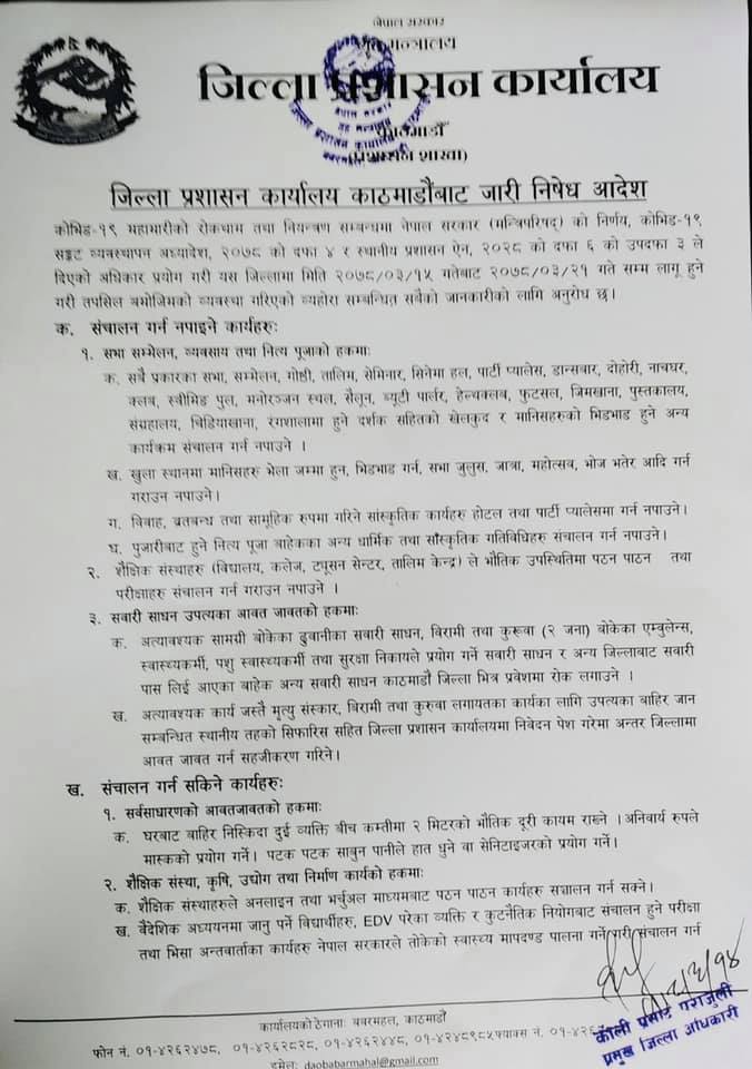 The prohibitory order has been imposed in the Kathmandu Valley to control COVID-19 since April 29.