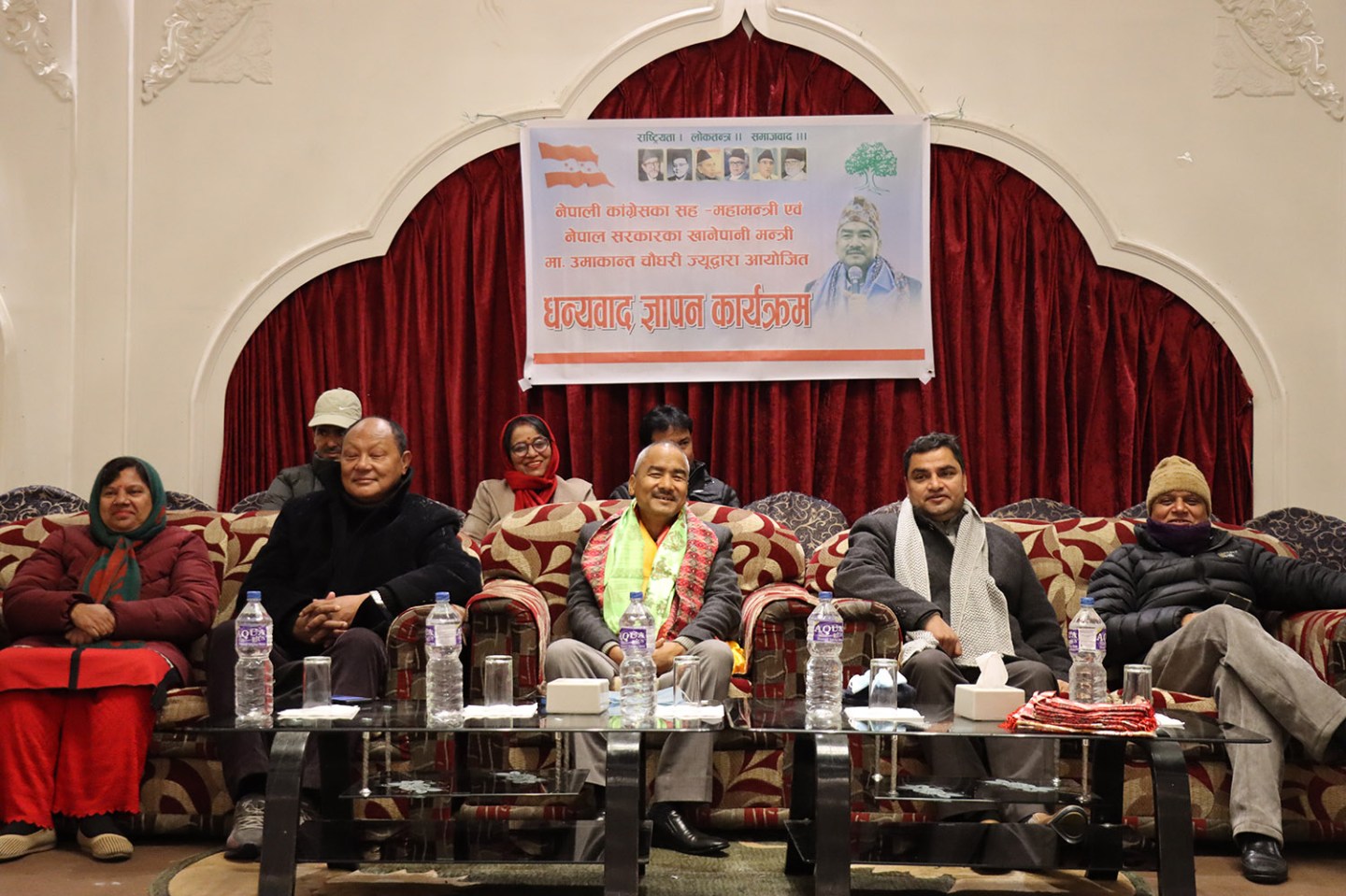 In his address to a program organized to thank the representatives of the Nepali Congress 14th General Convention that elected him as the party joint general-secretary, the Minister said he was committed to materializing the dream of former Prime Minister and NC veteran leader Krishna Prasad Bhattarai of providing water from the Melamchi river to the people of Kathmandu Valley.
