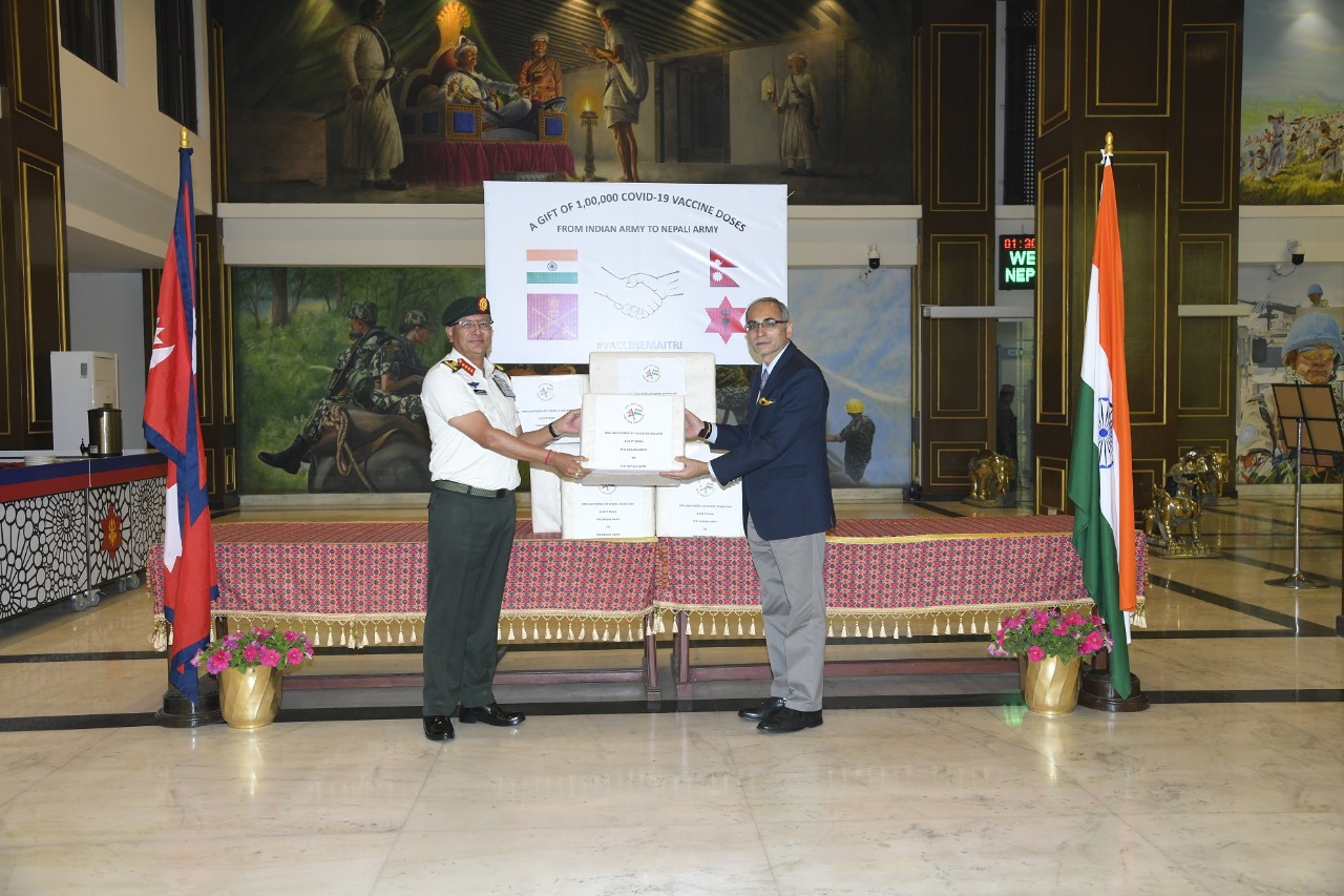 KATHMANDU: The Indian Army has gifted one lakh doses of COVID-19 vaccines to the Nepal Army (NA) at a program organized at the Nepal Army Headquarters in Tudikhel on Tuesday.