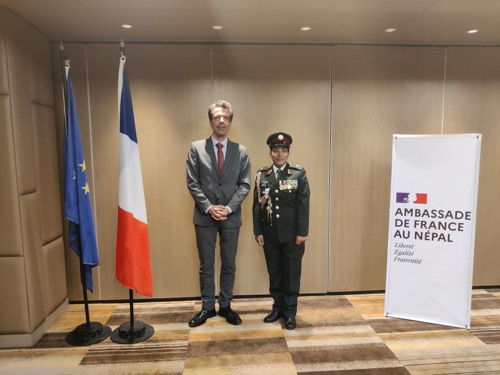 KATHMANDU: The French government has conferred upon Nepal Army (NA) Brigadier General Suresh Baniya and Major Prativa Thapa a French decoration for their exemplary service, in Kathmandu, on Wednesday.
