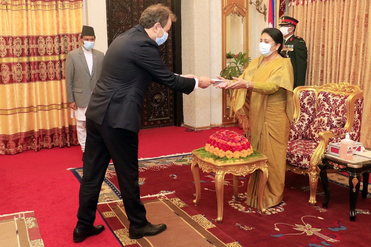 KATHMANDU: The new French Ambassador to Nepal Gilles Bourbao presented his letters of credence to the President Bidya Devi Bhandari at an official ceremony organized at the Office of the President on Thursday.