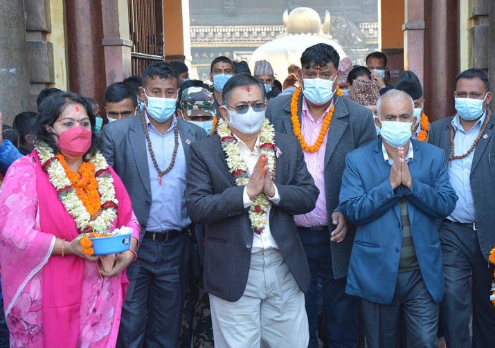 KATHMANDU: Home Minister Bal Krishna Khand visited the Pashupatinath Temple this morning to pay homage to Lord Pashupatinath.
