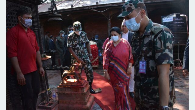 KATHMANDU: President Bidya Devi Bhandari today visited Kavrepalanchowk to pay homage to the Goddess Palanchowk