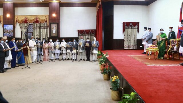 KATHMANDU: The newly appointed ministers have taken oath of office and secrecy. President Bidya Devi