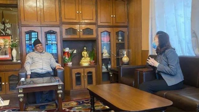 KATHMANDU: Chinese Ambassador to Nepal Hou Yanqi and CPN (Maoist Center) Chairman Pushpa Kamal Dahal
