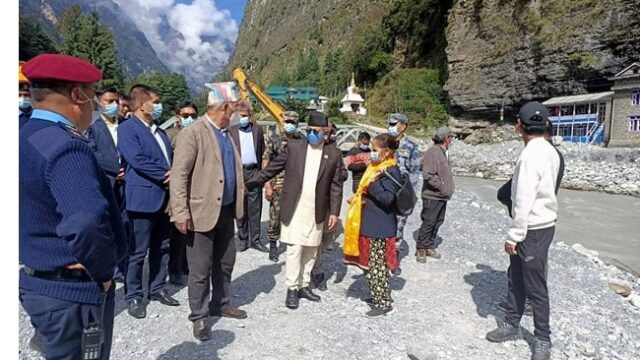 KATHMANDU: Home Minister Bal Krishna Khand has inspected flood-affected areas in Manang Thursday. During the